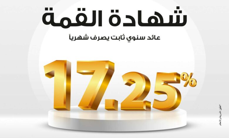 أعلن بنك مصر عن تعديل جديد في العائد السنوي على شهادة “القمة” الثلاثية ذات العائد الثابت، ليصبح 17.25% بدلاً من 16%، على أن يتم صرف العائد بشكل شهري، وذلك اعتبارًا من يوم الأربعاء 22 أبريل 2026.